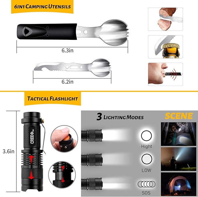 - ✅START YOUR HIKING OR FISHING ADVENTURE WITH CONFIDENCE: knowing that your tactical camping kit will keep you safe in case of an emergency. Our hiking gear survival kit is perfect for fishing, trekking, backpacking, mountain climbing or camping adventures since