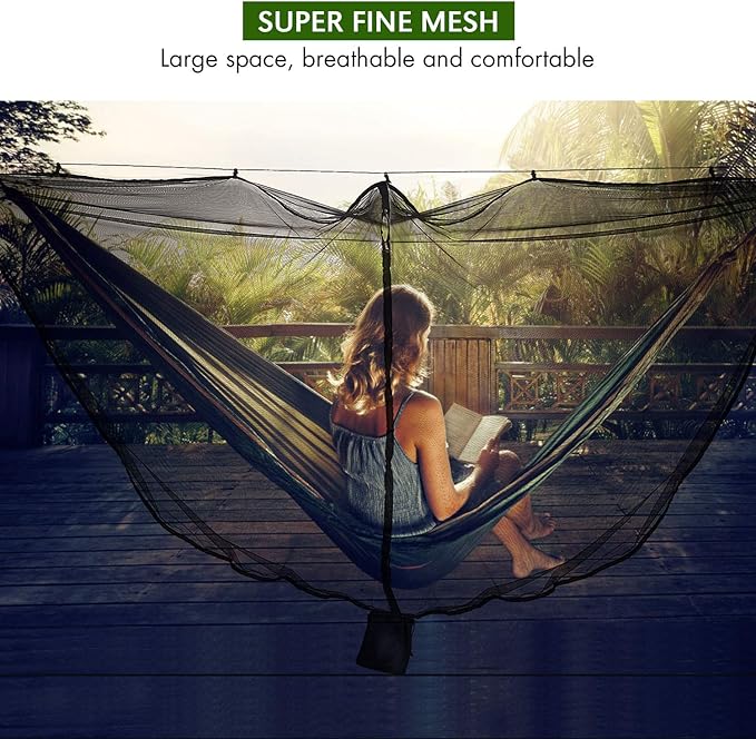 - 【BREATHABLE & WASHABLE HAMMOCK NET】-- Made of superior breathable polyester mesh netting, which makes it ventilated. And it will provide 360 degree coverage to protect you better. It is washable, dry up quickly for repeated use. Please note that the hammock is not included.