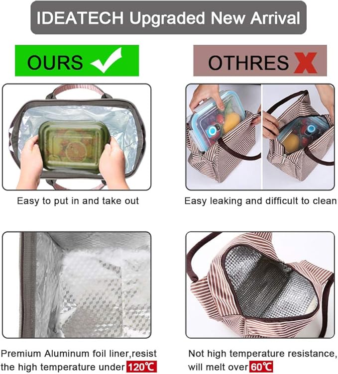 - Wide Open Design Convenient-Top of the lunch bag can be opened up to 10.5"L x 6.5"W by zipper closure, that means your lunch container can be put into the bag and taken out of the bag horizontally and quickly. Wide open design is for easy accessing and it can prevent the liquid from leaking out of the container and soiling inside of the bag. Save your cleaning time- Insulated lunch bags.