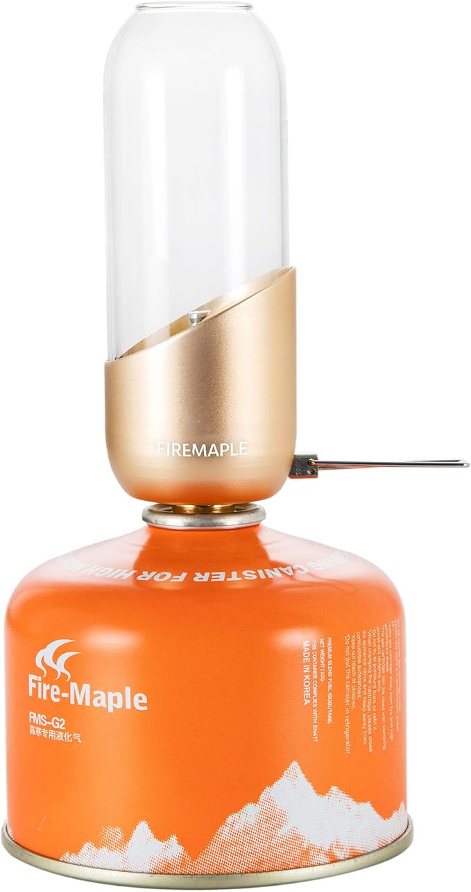 Fire-Maple Orange Camping Lantern Glass, Steel & Aluminum | Propane or Isobutane Fuel Canister Beautiful Camping Lights | NO Mantles Needed | Propane Lanterns for Camping, Emergency Essential