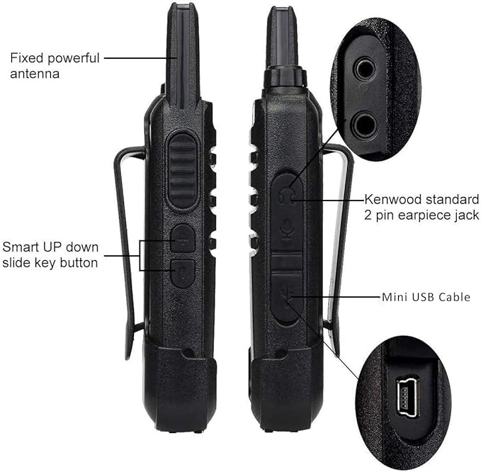 - Walkie talkies with 1000mAh battery and power saving function can last over 12 hours during use; charger with dual USB ports and USB charging cables improve charging efficiency