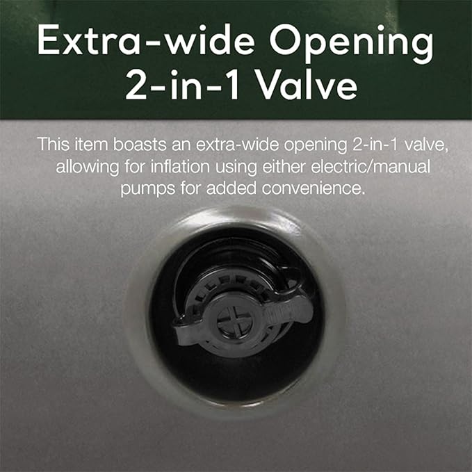 - BUILT-IN FOOT PUMP – The built-in foot pump allows for quick and effortless inflation without the need for additional tools or electricity (Approximate inflation time is 2.5 minutes)