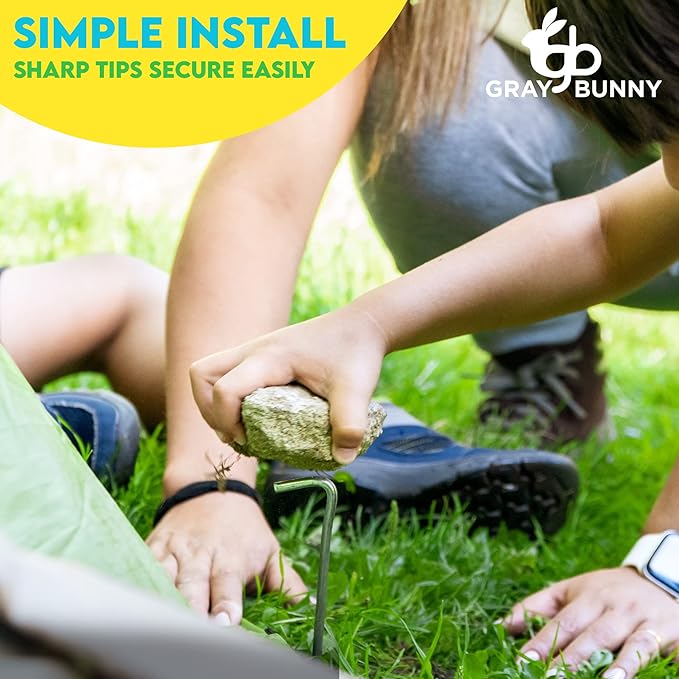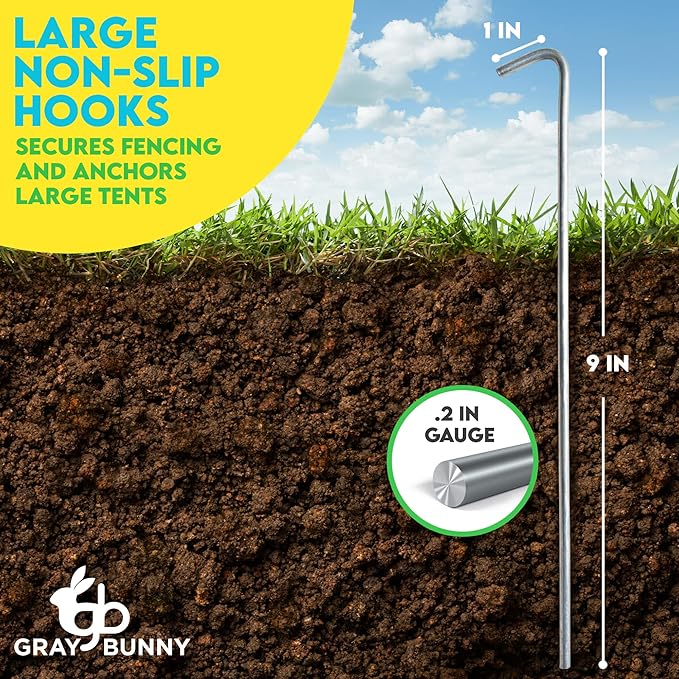 Gray Bunny Galvanized Steel Tent Stakes, 10 Pack, Solid Steel Tent Pegs, Rust Resistant Metal Hook, Garden Stake for Plants and Landscaping, Perfect for Anchoring Camping Tents