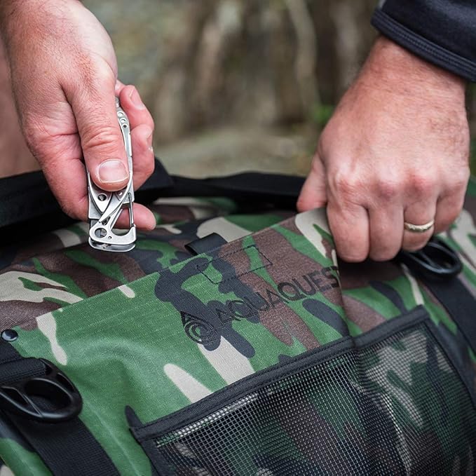 - VERSATILE - Two external mesh pockets provide easy access for small items, and allow you to keep wet and dry gear separate. Bottom of bag features four extra wide and durable webbing loops, allowing for fast and easy attachment to racks, motorbikes, cars, trucks, boats, etc.