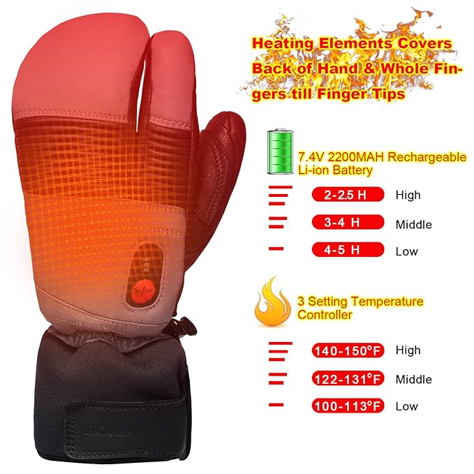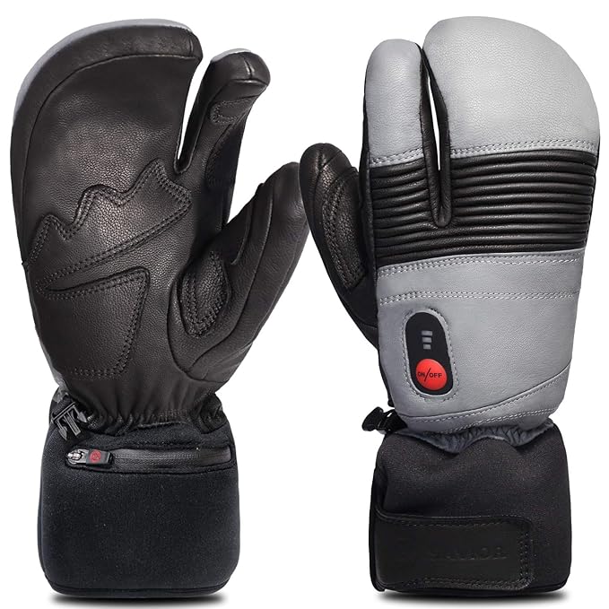 - 【Flexible 3-Fingers' Design】These 3 fingers heated gloves come with a split-finger design for dexterity in extremely cold weather. Its mitten design allows your thumb and index finger to grasp things well. The separate fingers provide more flexibility for gripping skiing devices like ski pole or snowboard and your smart phones.