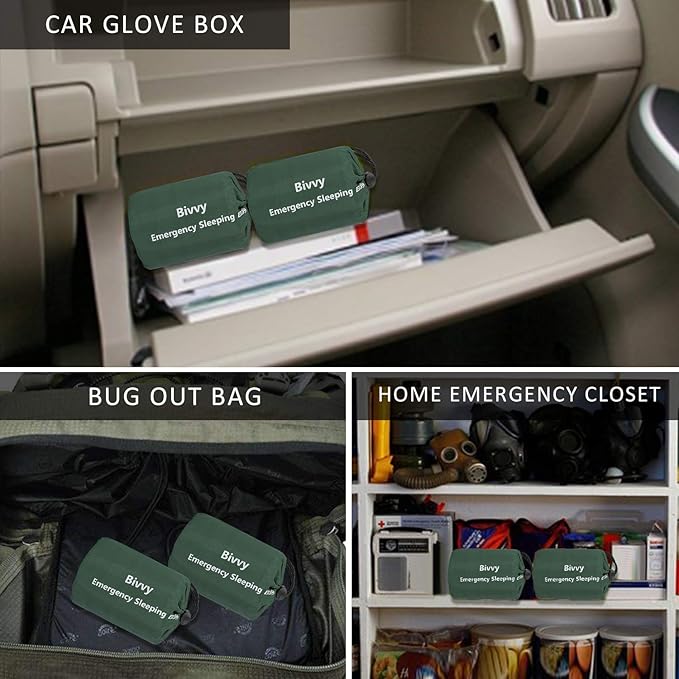 - 【MADE FOR EMERGENCIES】For its weight and thinness, these emergency sleeping bags will surprise you with their strength. The material ensures these sacks are tear-resistant, windproof and water proof. Plus, these bivy sack feature reinforced taped seams,locking out harsh weather to cover & protect you in the worst conditions.