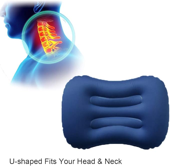 • ULTIMATE COMFORT - - Improved Ergonomic Design with Enhanced neck support for a restful night’s sleep! Inflates to a generous 17 x 13 x 5 inches, in a mere 3-5 breaths (approx.). Ergonomically designed for superior neck and back support while you travel or camp.