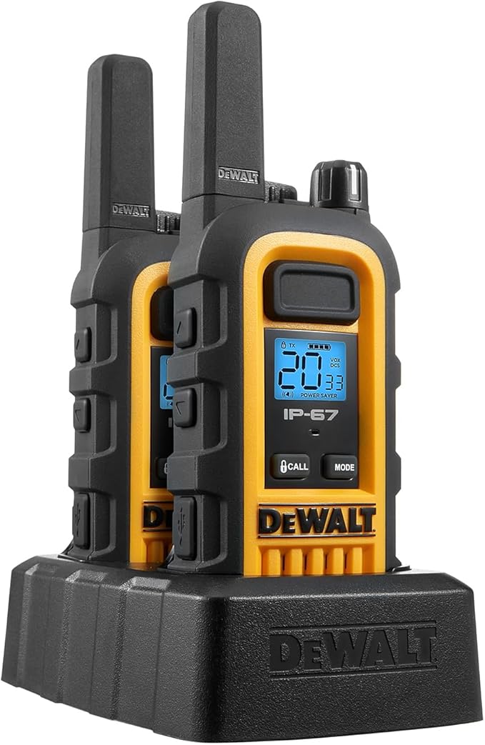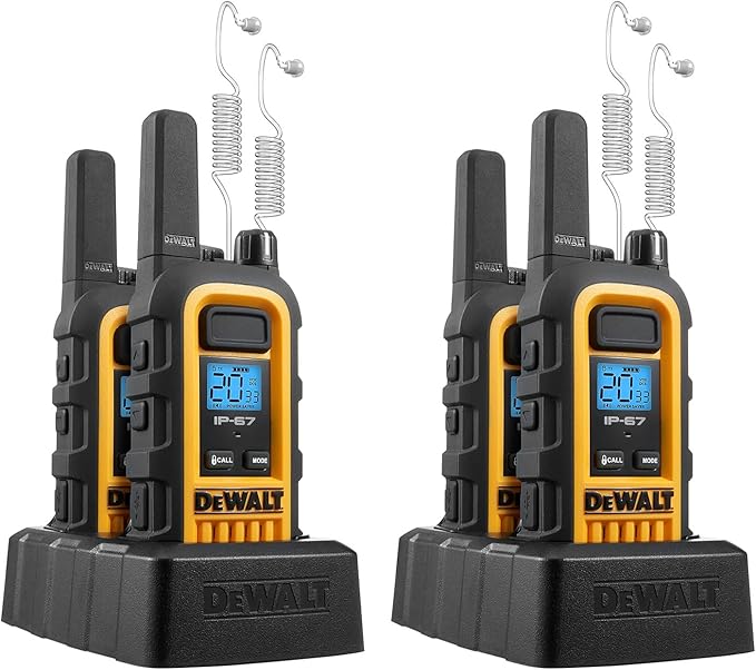 DEWALT DXFRS300 1 Watt Heavy Duty Walkie Talkies with Headsets - Waterproof, Shock Resistant, Long Range & Rechargeable Two-Way Radio with VOX (4 Pack) (2DXFRS300-SV1)
