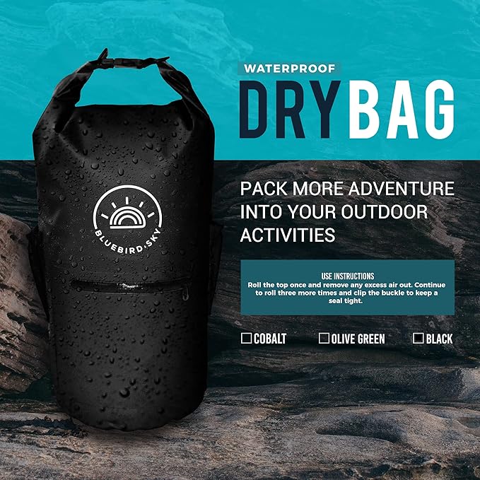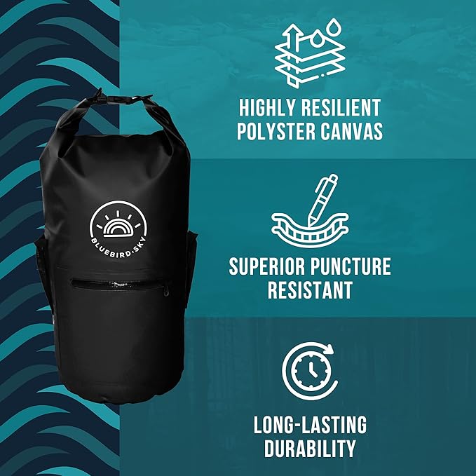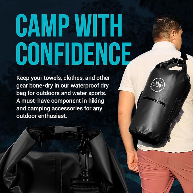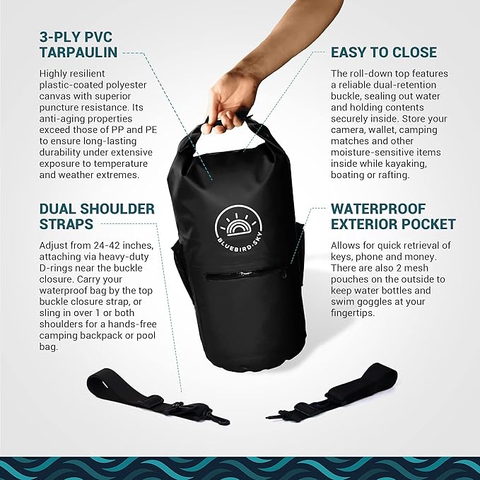 Waterproof Dry Bag with 2 Adjustable Straps, Waterproof Backpack, Essential Camping Accessories, Black, 23.2in x 9.45in - Size 20L