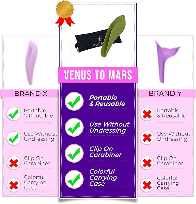 - Carrying Case Included- No need to buy an extra carrying case, the Venus to Mars urinating device comes with a custom made carrying case to safely store your Female Urination Device ( FUD for short).