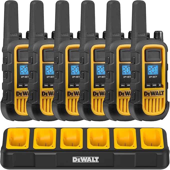 DEWALT DXFRS800 2 Watt Heavy Duty Walkie Talkies - Waterproof, Shock Resistant, Long Range & Rechargeable Two-Way Radio with VOX (6 Pack w/Gang Charger) (DXFRS800-BCH6)
