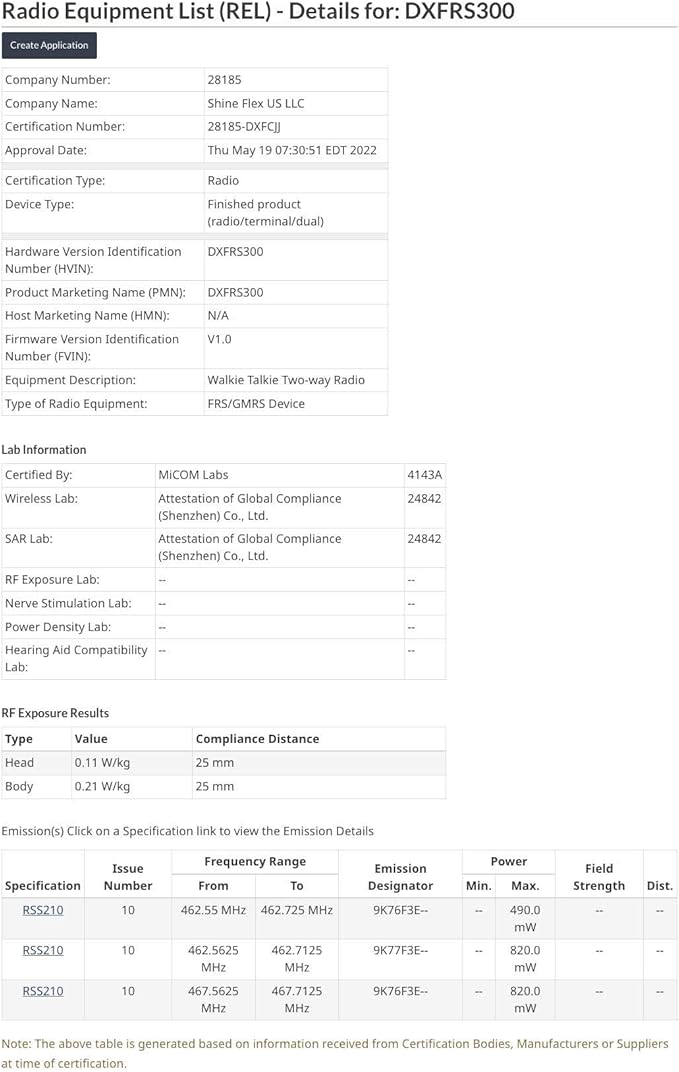 - Frequency Range : UHF/FM FRS 462/467MHz