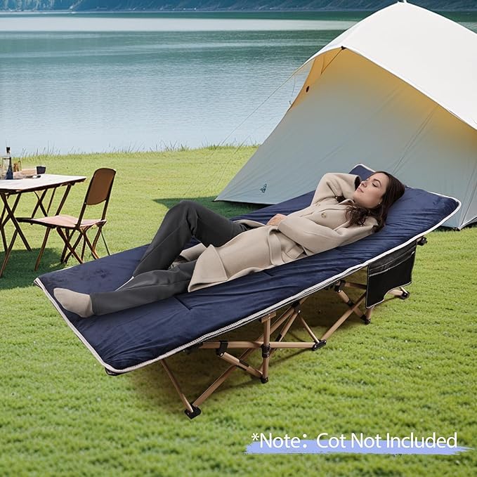 - Perfect Companion with Camping Cot: 2 elastic straps and a wide corner sleeve on the backside of the pad ensure the camping cot mattress stay put on the cot