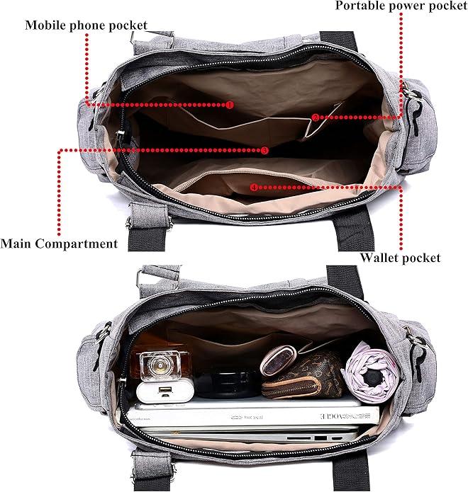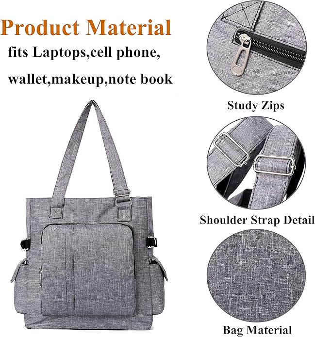VOLGANIK ROCK Canvas Tote Bag Waterproof Nylon Multi Pocket Shoulder Bags Laptop Work Bag Teacher Purse Handbag for Women Men
