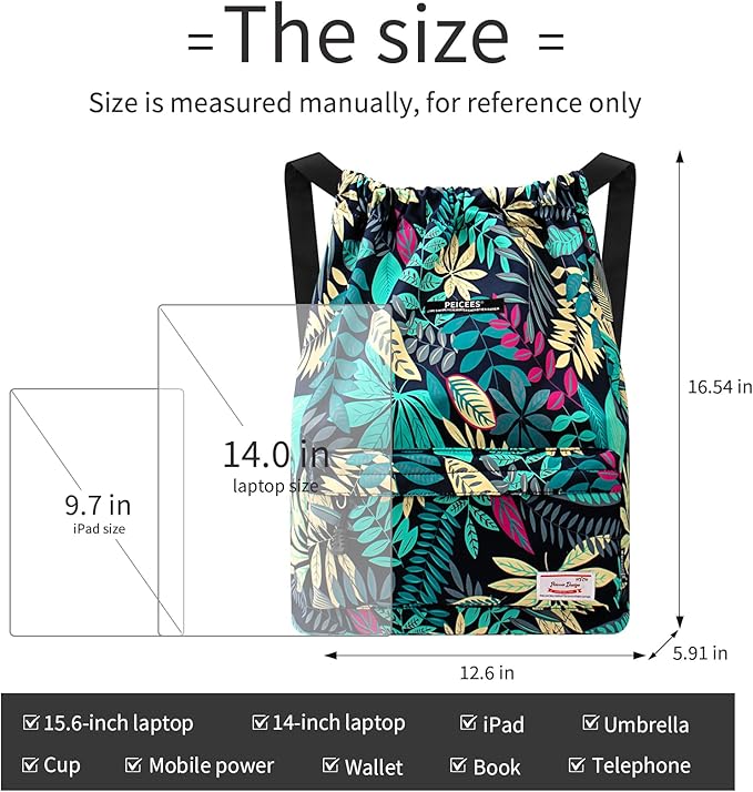 • COMFY ADJUSTABLE WIDE SHOULDER STRAPS - Wide, adjustable and sturdy shoulder straps make this gym string backpack more comfortable and durable. The shoulder straps can be easily adjusted, making you no worry about hanging low or high on your back. You will not feel uncomfortable even if you wear it for a long time.