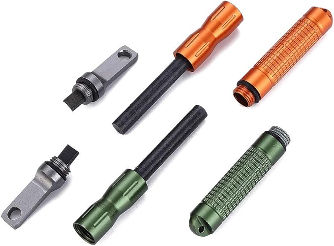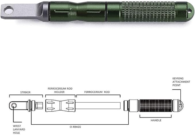 - Lightweight and durable: It is composed of lightweight aircraft aluminum body and replaceable threaded 1/4 x 2" Ferrocerium rod. The ferro rod is up to 8000 fire-starting strikes