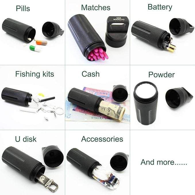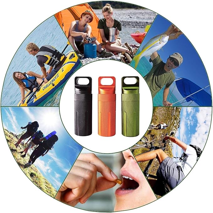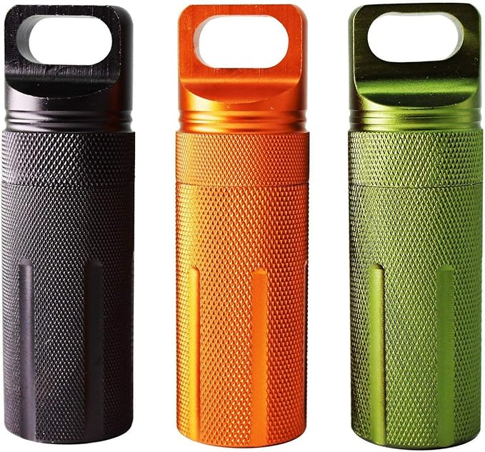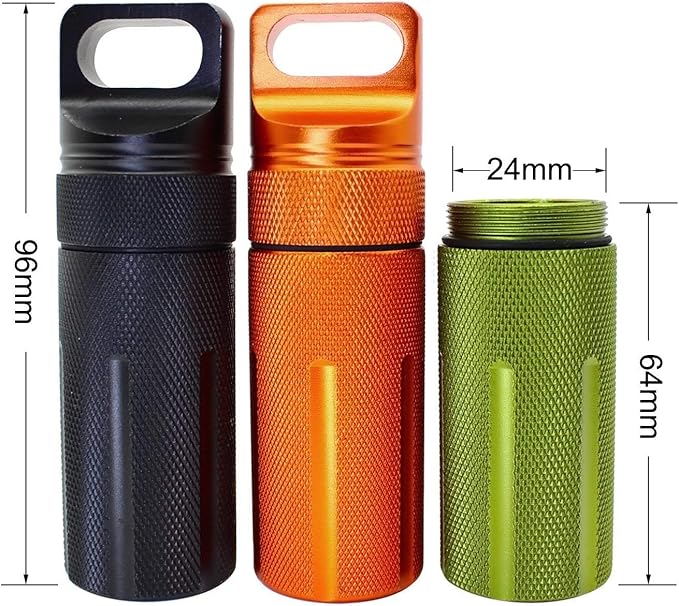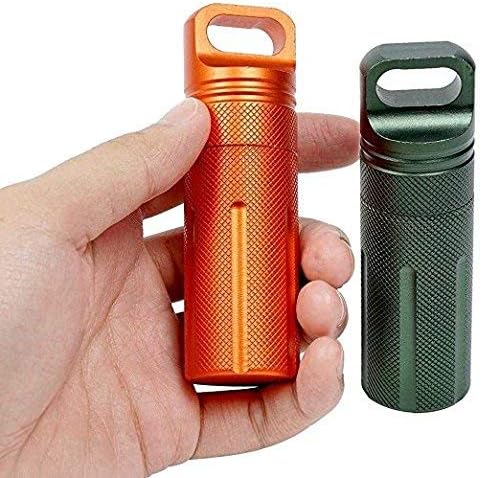 Ccanku C20 EDC Waterproof Case Military Level Survival Pill Match Case Box Container CNC Metal Seal Bottle Camping Essentials Tool, Survival Storage Container (Black Orange Green)