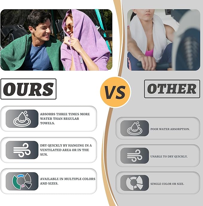 - Super Absorbent Fast Drying: Capable of absorb water, sweat and all liquids quickly, even dry your hair instantly. Dries 3 times faster than normal cotton towels. Perfect towel for traveling, pool or gym.