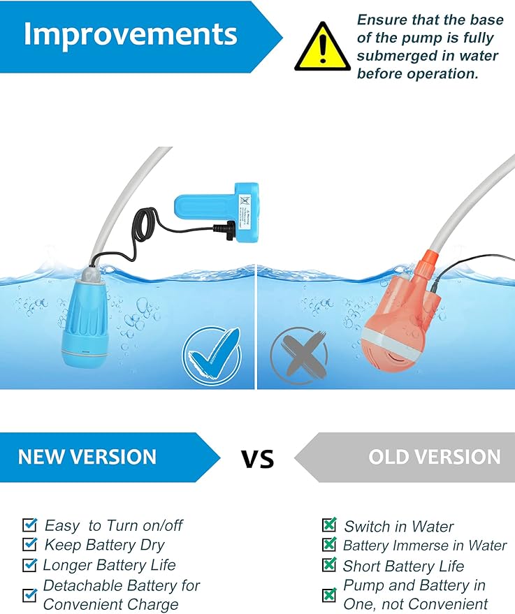 - EASY ASSEMBLY AND OPERATION: Attach pump and shower head to the hose. Fully immerse the pump in water and press the switch on battery to start. The camping shower offers gentle and comfortable stream at 0.9 gal/min (3.5 L/min).
