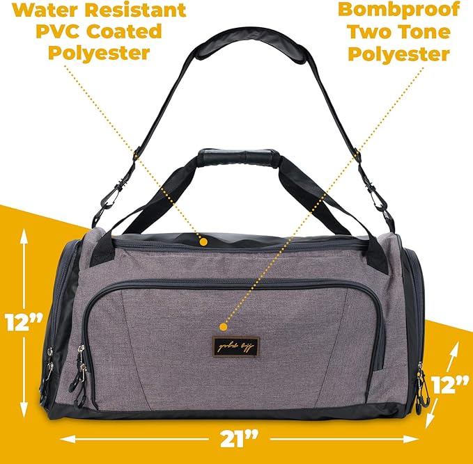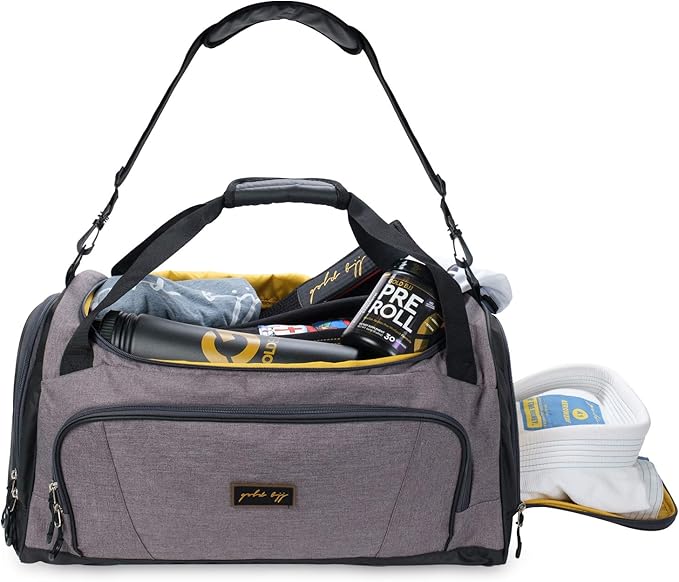 Gold BJJ Jiu Jitsu Duffle Bag - Waterproof Pocket for Sweaty Gi, Rashguard, or Shoes - The Perfect Duffel Bag for Martial Arts Gear, Boxing, MMA, and More