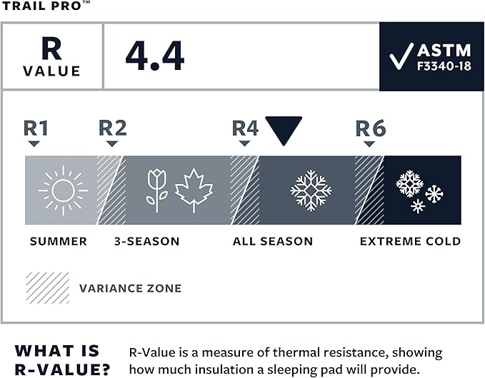 - 4.4 R-value means the Trail Pro offers enough insulation for year-round camping and backpacking