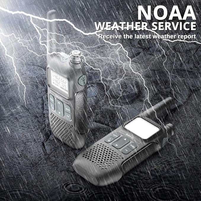 Radioddity FS-T1 FRS Two-Way Radio Long Range License-Free Walkie Talkies NOAA, 22 Channels 154 Privacy Codes with Earpiece, USB Charging, 4 Pack