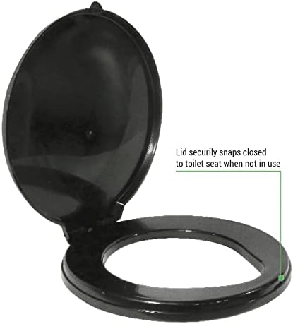 - SECURE SNAP: Toilet seat snaps perfectly onto your 5-gallon bucket so you feel safe and secure every time. Lid snaps securily to toilet seat when not in use.