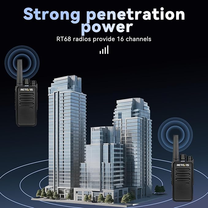 - Clear and loud audio;powerful penetration;RT68 radios provide 16 channels combinations which can penetrate building and steel;cost-effective radio whcih is perfect for construction;manufacturing; warehouse;retail;hotels;schools;etc