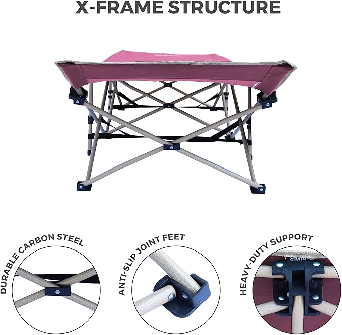 - EASY to SET UP and CARRY - Easy to use sleeping cots for adults; open by pressing down on the 4 frame joints to lock them in position; close by loosening the same joints while the cot is on its side and pulling the frame cords to fold the legs.