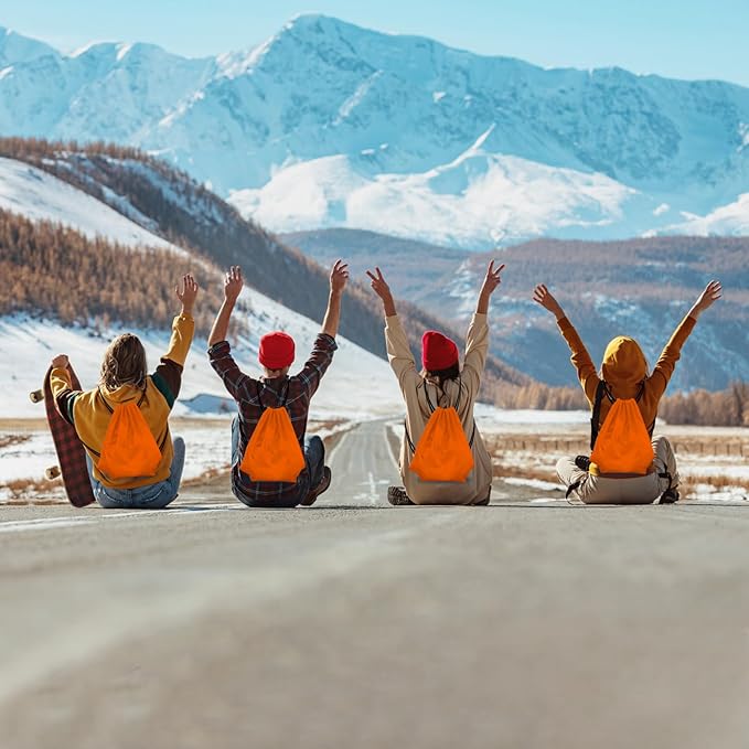KUUQA 2Pcs Orange Drawstring Backpack Bags Cinch Sack Bulk String Backpack Storage Bag