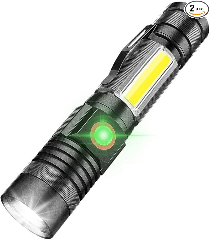 - [ Super Bright LED Flashlight ] : 2000 lumens maximum can provide up to 600 feet of intense light. Fully zoomable from wide to narrow beam.With 4 lighting modes: high / low / COB SOS / COB side light mode.