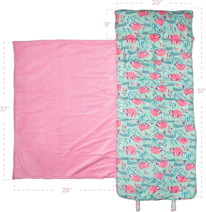 - PERFECTLY SIZED: Measuring 20"x 50" with an extra wide 38" blanket, this is the perfect nap mat for your little dreamer. Attached straps make carrying easy for kids without sacrificing comfort.