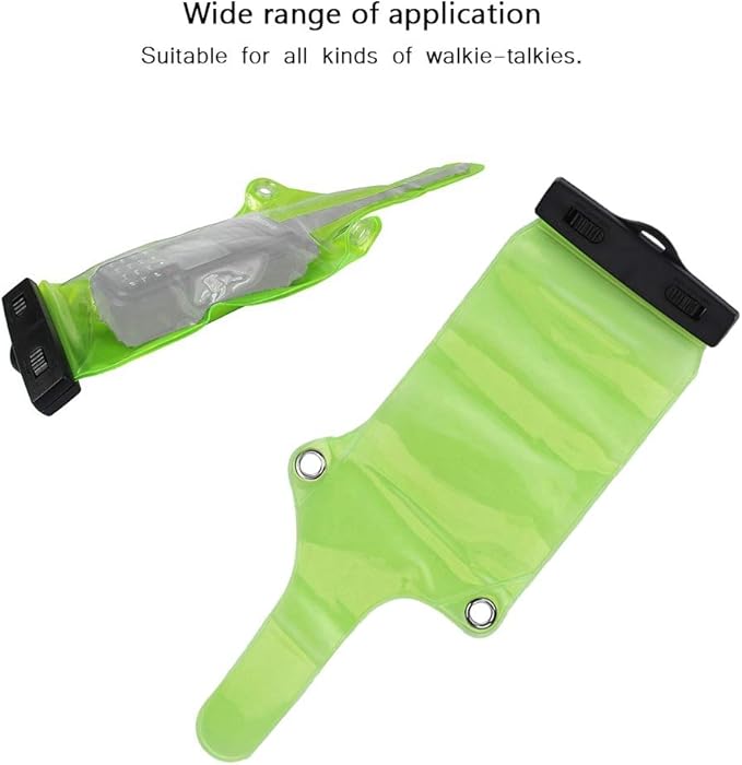 - [Radio/Walkie Talkie Waterproof Bag]: It adopts environmentally friendly PVC material and the high strength ABS clip is used to completely isolate the inside of the bag from the outside of the bag, which is wear resistance, waterproof. Dustproof, Rainproof, sandproof, Mistproof, Snowproof and scratch proof. But not recommended to soak in the water in long time.