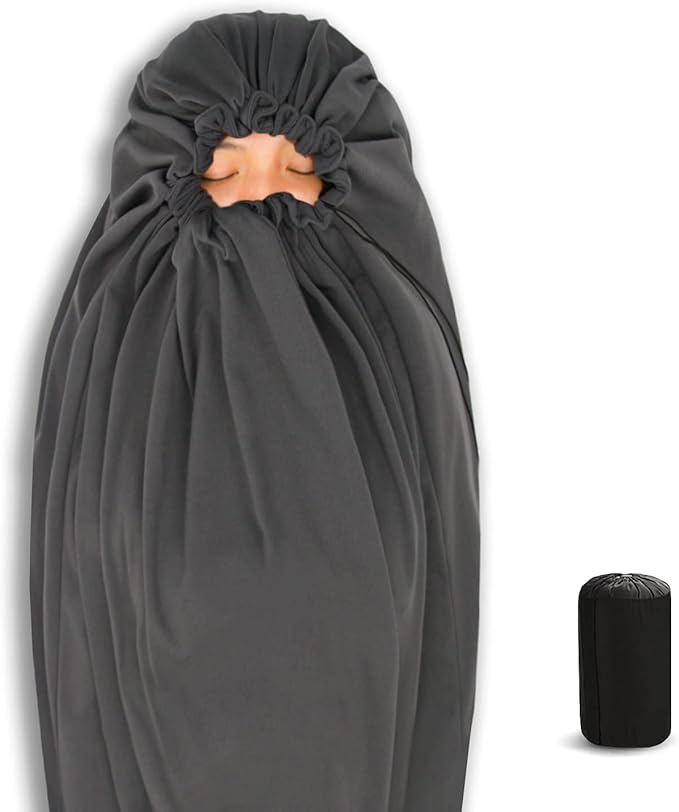 All Season Fleece Sleeping Bag Liner Adds Up to 27°F/ 15°C, Lightweight Mummy Sleeping Sack for Cold Weather and Winter Backpacking, Camping, Traveling with Drawstring Hood and Stuff Sack E629