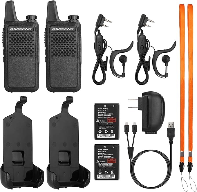 - [Long Service Life] 1500mAh battery in this mini walkie talkies. Allow up to 40 working hours after about 3h charged. No screws are needed -- you can fast clip the Baofeng GT-22 with holster on your belt.