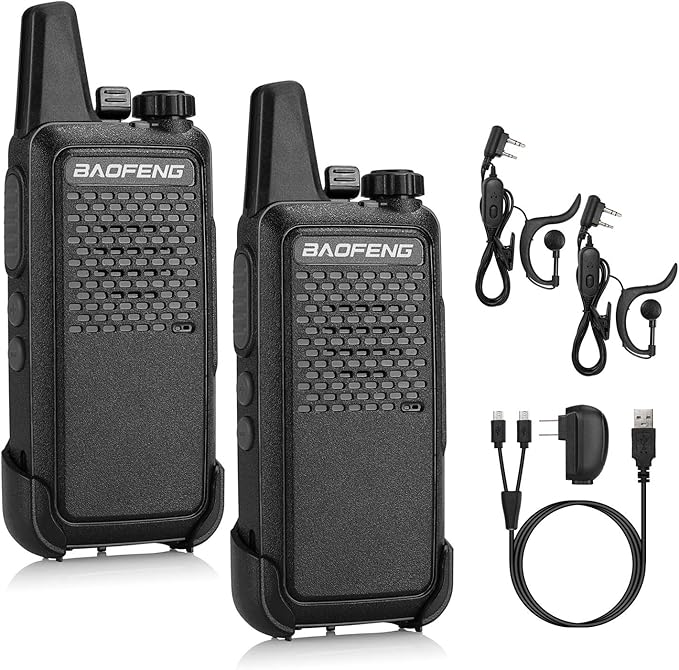 BAOFENG GT-22 Walkie Talkies for Adults Rechargeable, Long Range Two Way Radios with 1500mAh Battery, Portable Handheld VOX Handsfree with Earpieces, Holsters (2 Pack)