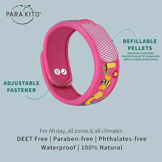 - FUN & STYLISH PROTECTION: Whether strolling through a forest or playing at the pool, PARA’KITO Kid's Wristbands will become your child's best friend. Can be worn around the wrist or ankle. You can even place it beside your sleeping pad for the perfect mosquito-free camping night. The perfect addition to your glamping accessories, or to your hiking & camping gear!