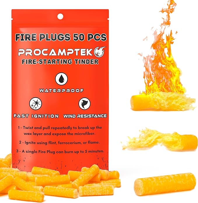 Fire Plugs (50 Plugs) 100% Waterproof Fire Starter for Emergencies, Survival, Campfire, Fire Pits, Grills | Burns 5+ Minutes, All Natural, Non-Toxic