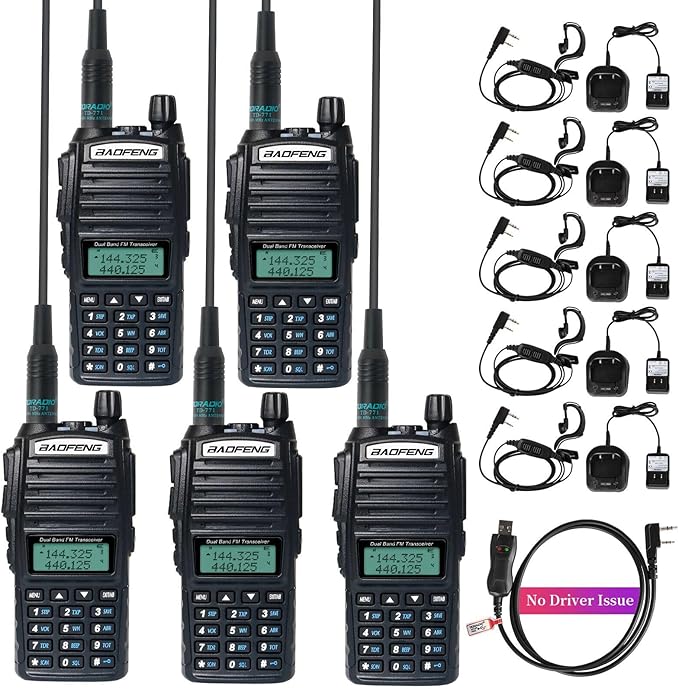 - ✔️FTDI Programming cable: Baofeng uv-82 5pack come with one FTDI Programming cable,No Driver Issues - No old drivers needed - Plug and Play.