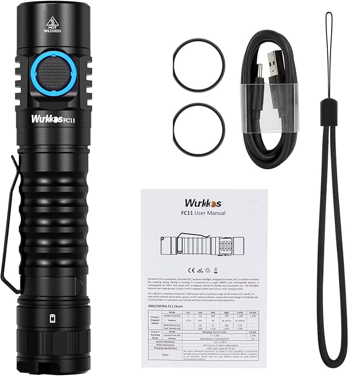 - 【Ultra-Bright LED Handheld Flashlight】Wurkkos FC11 utilizes 1* LH351D LED, high 90CRI(TEH SUN:100CRI), Output up to 1300 lumens (max.) and beam distance up to 144 meters(157 yards). The LED has a natural white light color with good color rendering. You can see every detail even in complete darkness.