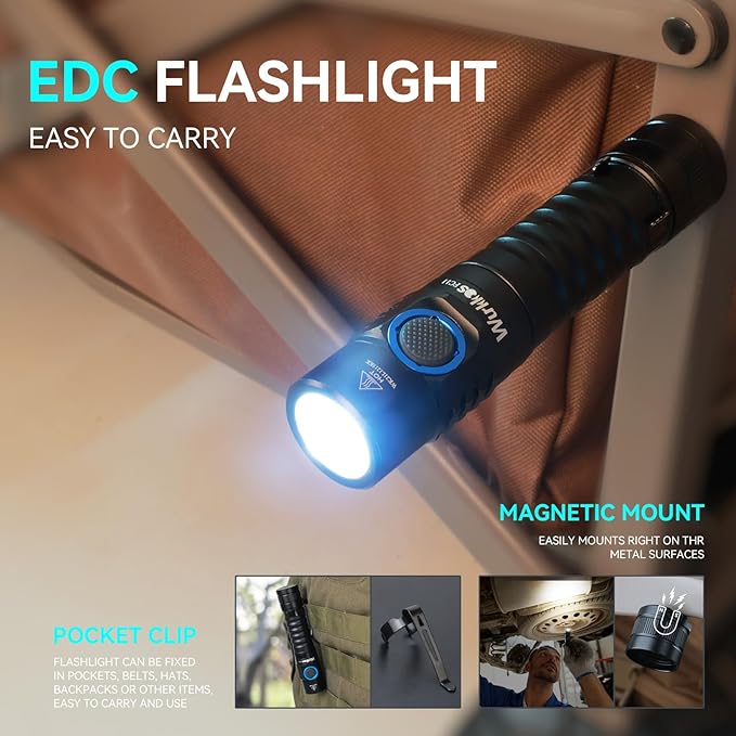 Wurkkos FC11 Rechargeable LED Flashlights Max 1300Lumen High 90CRI EDC Flash Light USB C Charge,IP67 Waterproof Torch, Magnetic Tailcap, Great for Dog Walking Home use Emergency(5000K)