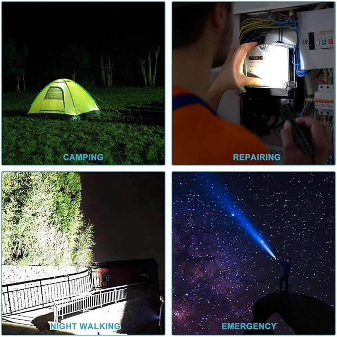 - 【USB C Rechargeable Flashlight】Great design with Optimal Hidden USB-C Port, Charging via standard USB A-C and C-C cable, more quickly and easily. Especially in conjunction with a power bank, computer, very simple and practical.