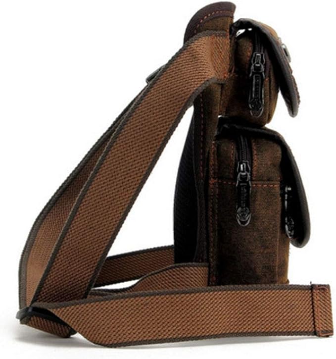 - Versatile & Special: Size: 15cm(W)x7cm(D)x26cm(H)(5.9"x2.75"x10.23") approx; Fit Waist: ≤127cm(50") approx; Fit Thigh: ≤90cm(35.4") approx; Weight: 310g approx; practical, minimalist design, one front top zipper pocket with cover can hold you phone, watches, keys, lighter, cell phone; One main zipper pocket and one front zipper pocket design with cover, super simple style, vintage and fashion.