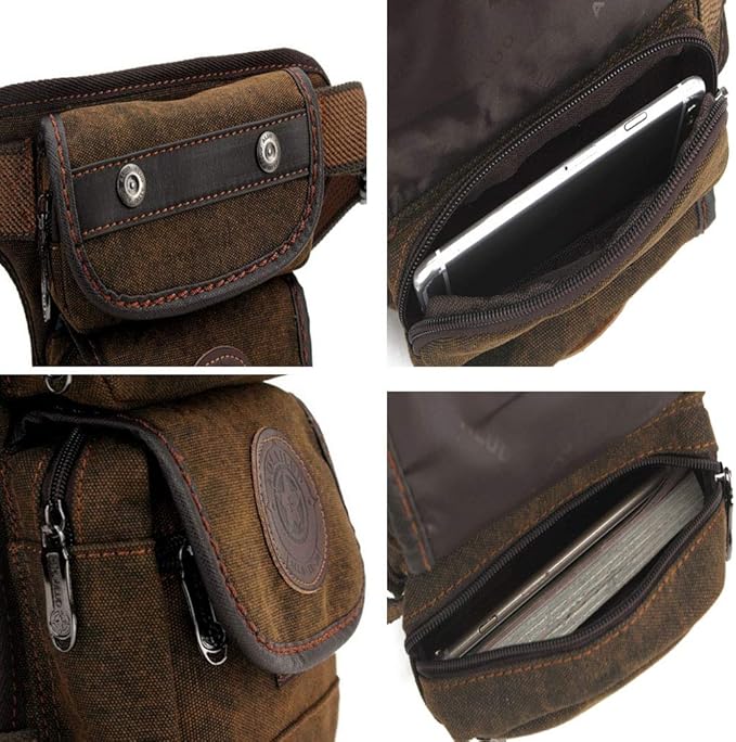 - Durable & Cotton Canvas Drop Leg Bag: This leg bag is made of Cotton Canvas, top-quality zippers, adjustable straps, fabric lining, zip closure, excellent workmanship, ideal for motorcycle, bike, riding, cycling, travel, outdoor, sports, hunting, hiking, tactical, running, fishing, walking, jogging, camping, all kinds of outdoor activities and daily use.