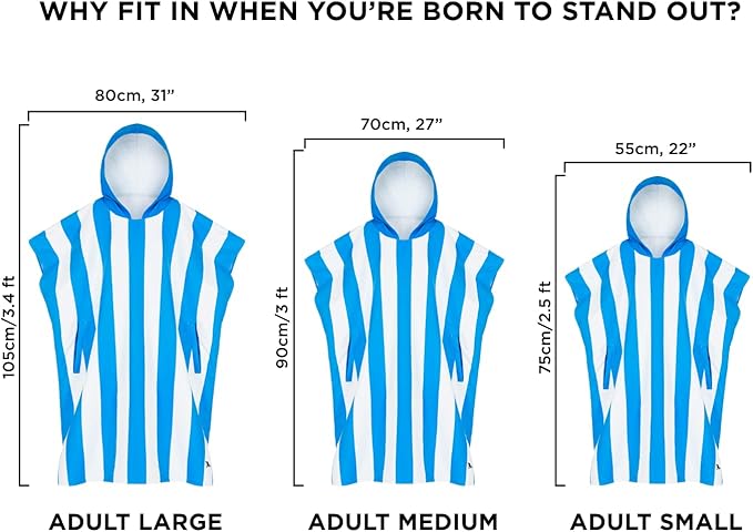 • MULTIPLE SIZES - The Adult Poncho comes available in three different sizes: Small (85x65cm/33.5x25.6"), Medium (90x70cm/35.5x27.6") and Large (105x80cm/41.3x31.5")
