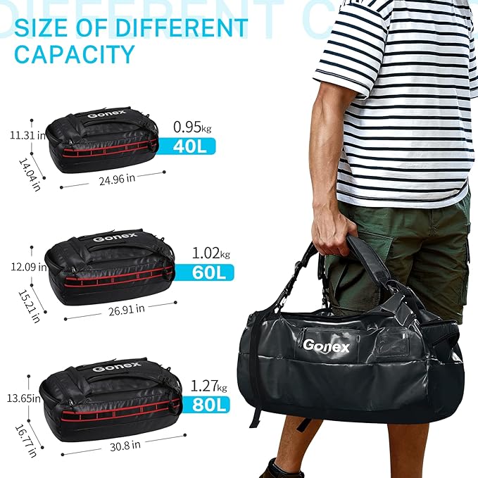 - 【Versatile & Multifunctional】 Gonex multipurpose duffel is strong enough for anytime use, suitable for hiking, camping, travelling, trekking, camping, cycling trip, self-driving trip and many more.