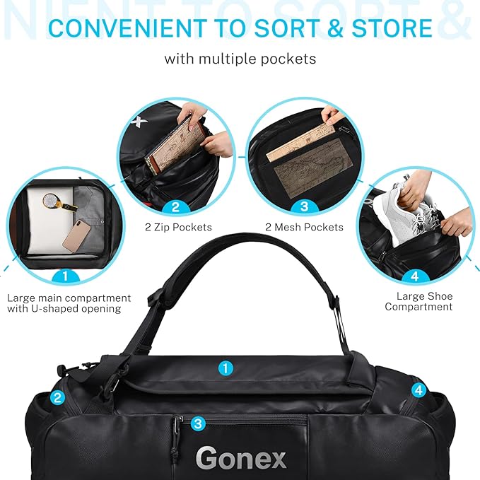 Gonex 80L Duffel Bag Backpack, Convertible to Gym Backpack and Handbag for Men Women, Water-Repellent for Hiking Camping Travelling Cycling, Black