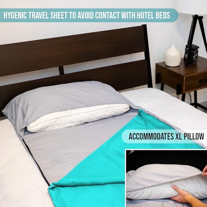 - WIDE PILLOW POCKET: Take your favorite pillow with you camping without worrying about getting it dirty. The compact sleeping bag liner is intelligently designed to accommodate an XL pillow. Keep your pillow clean, fresh, and avoid unnecessary wear and tear. You will be able to enjoy the comforts of sleeping at home while camping. While traveling, fit your hotel pillow in the case to avoid contact.