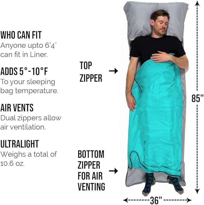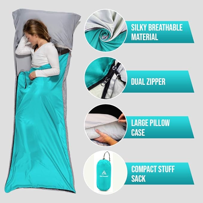 - HANDY EMERGENCY SLEEPING BAG LINER: On chilly winter nights, our backpacking sleeping bag liner will add 10 degrees of extra warmth. On warm summer nights, it will keep you clean and comfortable as a stand-alone sheet. Are you traveling soon and worried about hygiene? We got you covered! Lay it on your hotel or hostel bed to avoid contact with bed sheets. Now you have a hygienic travel sheet that takes very little space in your bag.