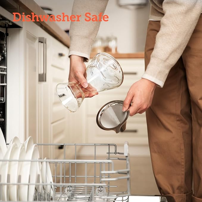 - Special Feature : Wooden Sleeve, Dual Stainless Steel Filter, Dishwasher Safe Decanter, Borosilicate Glass